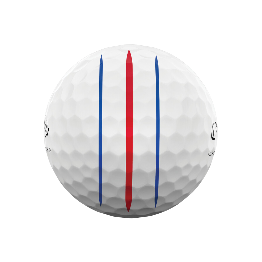 Callaway has prominently featured Triple Track lines on the ball for improved putting accuracy. Triple Track uses Vernier Hyper Acuity to improve alignment compared to a regular side stamp alignment aid.