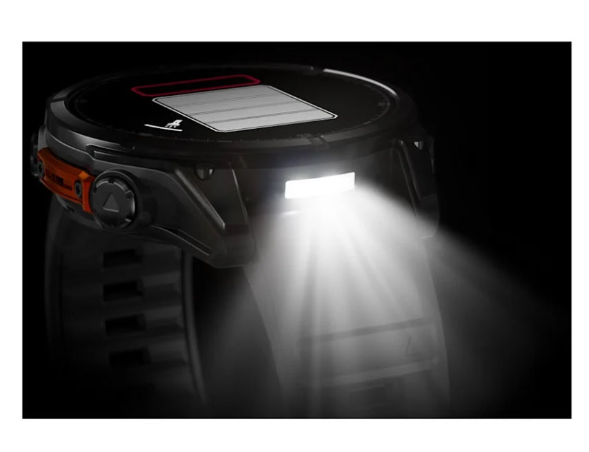 For serious athletes and adventurers who want to push beyond their limits, this premium multisport GPS smartwatch is built to perform — with advanced strength training features, dive capability, an internal speaker and mic for voice features, a built-in LED flashlight and more.