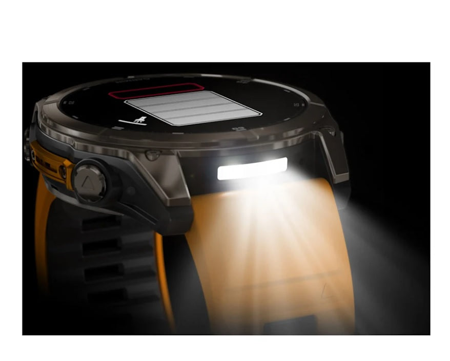 For serious athletes and adventurers who want to push beyond their limits, this premium multisport GPS smartwatch is built to perform — with advanced strength training features, dive capability, an internal speaker and mic for voice features, a built-in LED flashlight and more.