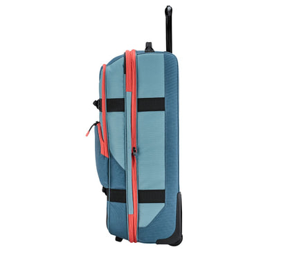 Meet your long-haul travel companion: Alpha Terminal. Constructed with durable materials, a dual-stage trolley handle, and abrasion-resistant corner protectors, this checked luggage is the ideal choice for those seeking reliable checked luggage for your next 7–14-day adventure. The interior is split into two organization compartments, one large side with compression straps and the other side separated by a mesh zip pocket and removable divider. Use the add-a-bag strap to tow its smaller companion, the Alpha Layover.