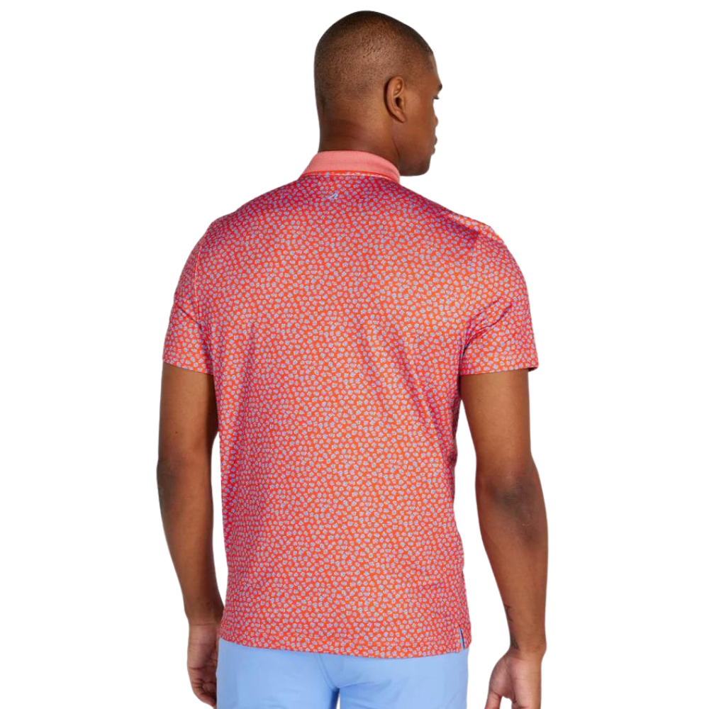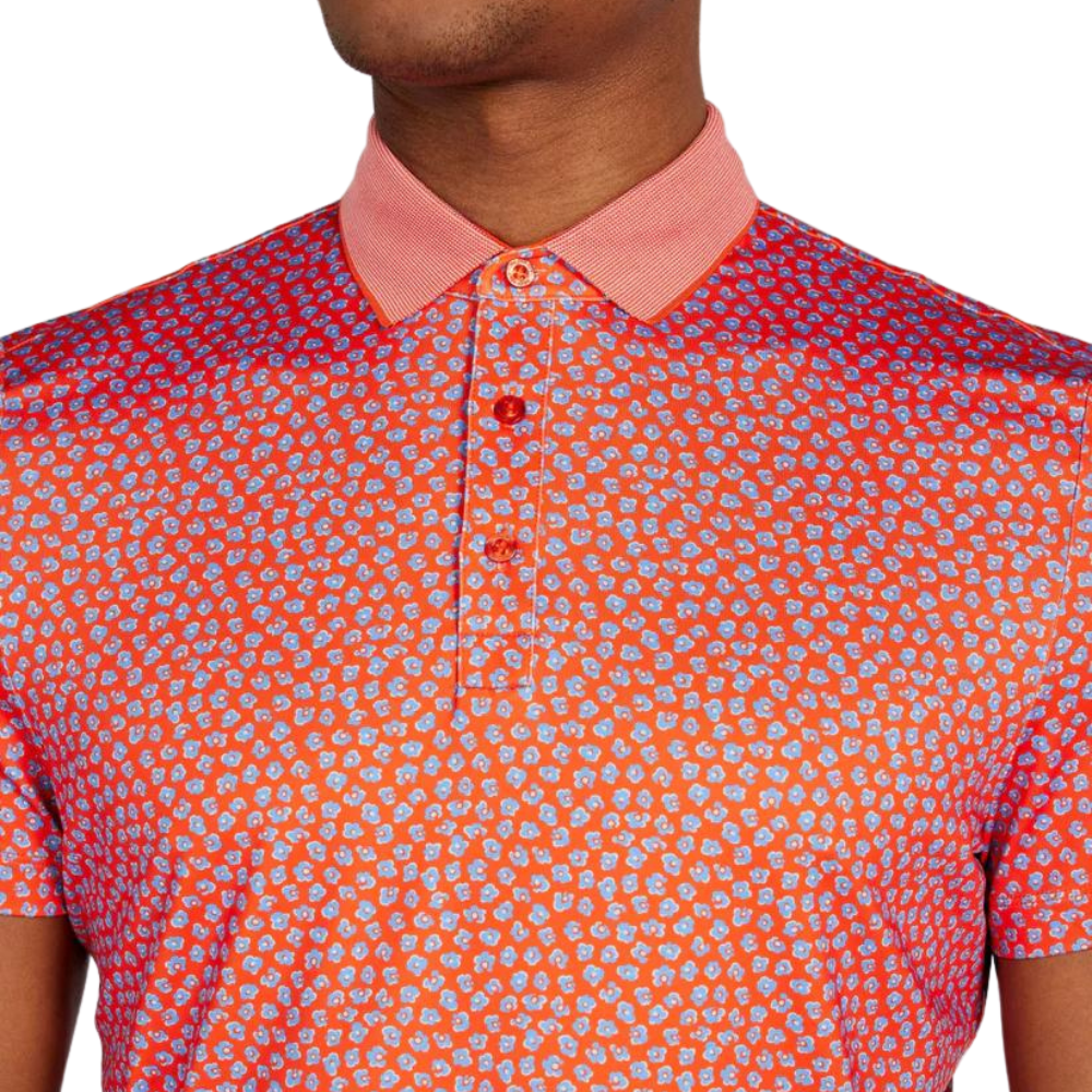 The budding and blossoming lotus flower carries the symbol of hope and strength - a requirement for all athletes. Spread self collar and 3 button placket front closure.