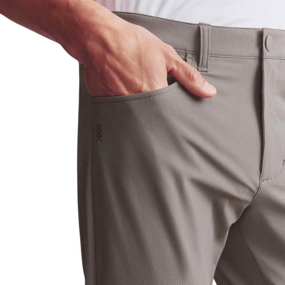 The green s never felt so good. The Momentum Golf Five Pocket Pant is mindful in its construction lightweight and all-stretch performance fabric, an interior silicone gripper to keep your shirt tucked in, pockets to caddy your personals, and a snap button closure so you can focus what matters most: finding the ball.