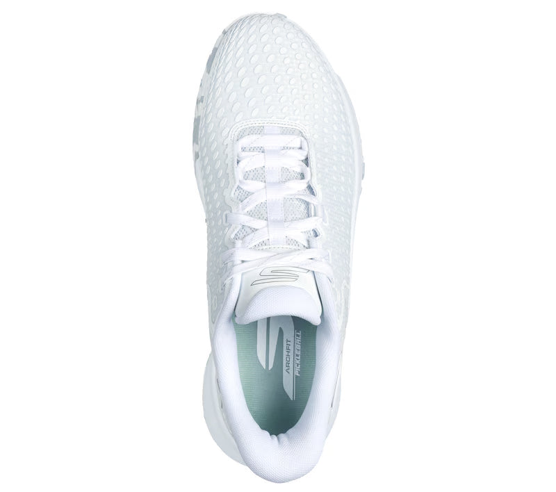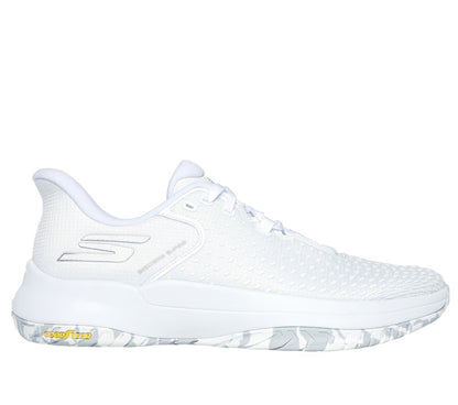 Take your game to the next level with Skechers Hands Free Slip-ins: Viper Court Elite. Created specifically for the competitive Pickleball athlete, this slip-on court shoe features our exclusive hands-free Heel Pillow with an athletic mesh and screen print upper, removable Arch Fit® insole, and lightweight ECO FLIGHT cushioning. The design is complete with a Goodyear Rubber Performance Outsole built for increased durability and control on the Pickleball court surface.