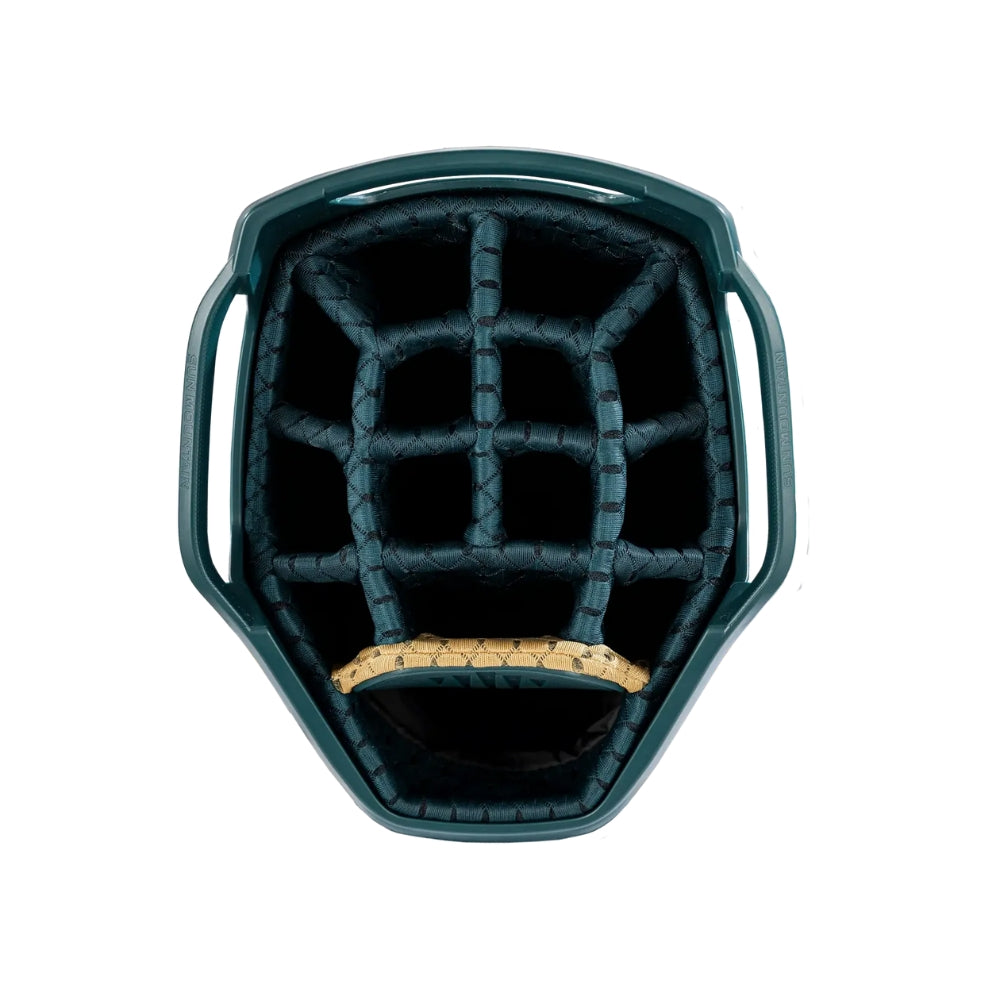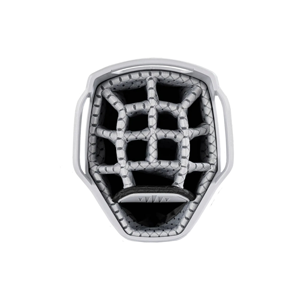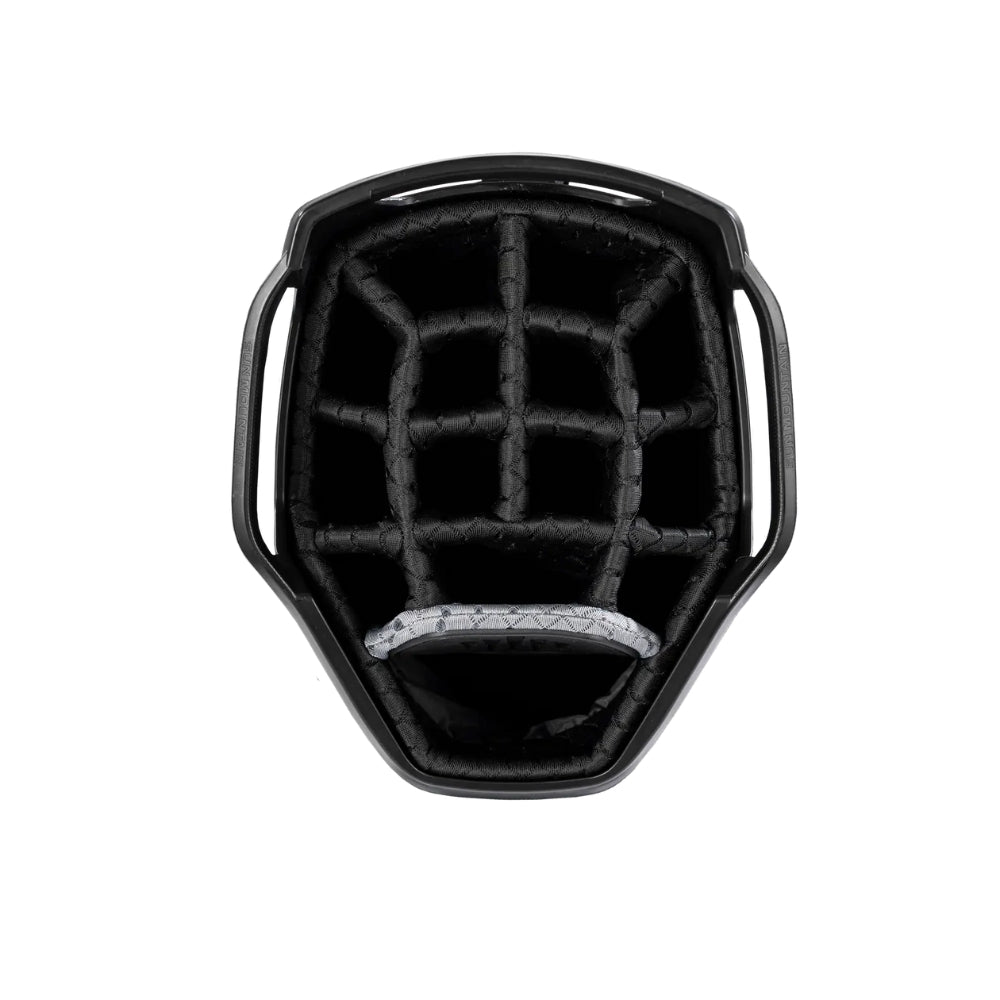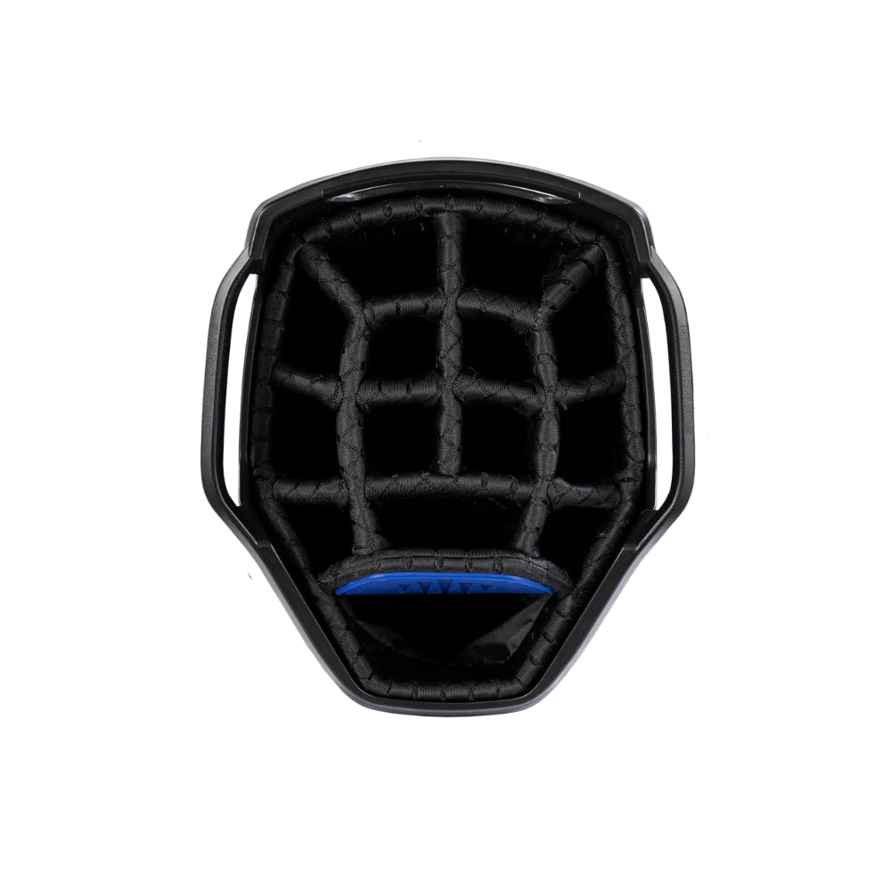 The C-Series C-130 Cart Bag continues its legacy as an industry leader with nearly two decades of refinement. It offers eleven strategically designed pockets, including two spacious apparel compartments, a velour-lined rangefinder pocket with a magnetic closure, and an insulated cooler pouch to keep beverages fresh. Fourteen individual dividers run the entire length of the bag, keeping clubs organized and easily accessible. The innovative Smart Strap System secures the bag to a cart without hindering pocket access, providing convenience and functionality every round.